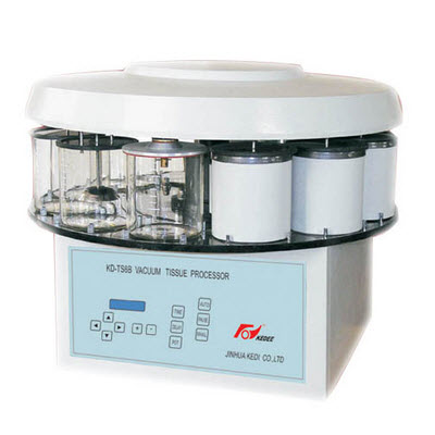 KD-TS6B型真空自动组织脱水机是一种微机控制,先进的生物组织自动处理设备。该机设计先进、结构合理、操作方便、带有真空功能,能够提高组织处理的速度,质量价格比*佳,人机工程设计完善,可广泛用于医院,大专院校及科研单位的病理部门进行人体或动植物的组织脱水。