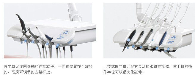 为了帮助客户更好的选择颜色同时激发他们的购买热情,,我们特别设计了三种非常吸引人的色彩组合。对于口腔综合治疗台的传统设计,现代感的色彩组合理念堪称是完美的补充搭配。