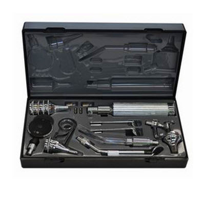 由检眼镜、检耳镜、检鼻器、喉镜组、压舌器、金属电筒手柄组成。