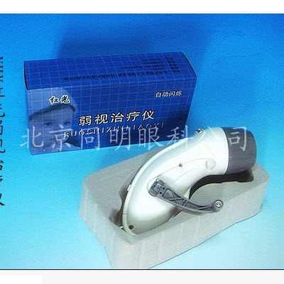 1.按下仪器头部电源开关,红光开始闪烁,手握仪器对准弱视眼,注视闪烁