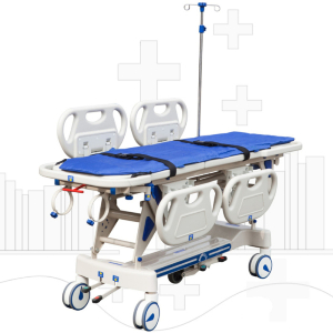 规格:1930×650×(820-520mm)·医用转运车、ABS转运车、ABS豪华转运车、医用平车、手术推车医用平车1、平车主要框架采用优质铝合金材料,外形美观豪华,结构牢固可靠。2、摇手顺时针方向摇时,车体向上,逆时针方向摇时,车体向下有明确的箭头标记指示使用进行操作中控轮,直径150mm,配有中央导向轮。方便使用者控制车体进行方向,高-低范围:820-520mm4片可升降护栏,一体吹塑成型床面板标准附件:床垫,盐水架