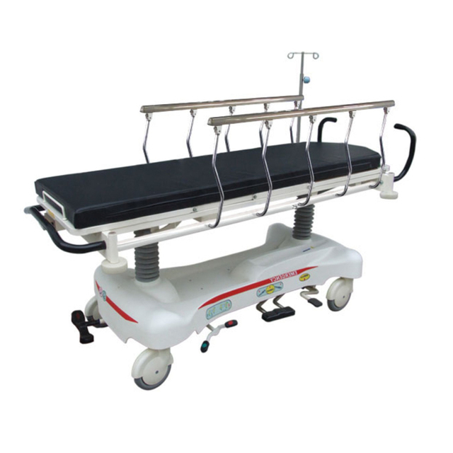 床身镀锌钢管制成,外表粉体喷涂,床背板可透X光材质(美国制电木板),升降采用LINAK电机升降系统。该车采用国际先进的中控刹车系统,Φ200防尘脚轮使平车运动稳定、可靠、轻巧。床身升降、倾斜及反倾斜由床体两侧踏板操作,使用方便;床头尾设有中央控制刹车踏板;底罩采用PP材质一体成型,方便清理。车面为分体结构,上体采用大型油压杆支撑梁柱设计,床身不会摇晃。配铝合金全倒式护栏、输液架、引流挂钩。是急诊室、ICU、病房据推运病人及当急诊床、ICU床的最佳选择。