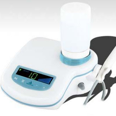 Veloce II结合了美观,功能性和人体工程学,自带一个350ml和500ml的瓶子(装水),无需外接水源,适用于清洗附在牙齿上的牙垢,齿菌斑和烟渍,自动供水模式下可使用专业药液,如双氧水,洗必泰,次氯酸钠,使牙周治疗,根管治疗效果大幅提升。其手柄内采用优质压电陶瓷,功率大且不衰减,效率高,产热少,手柄轴芯采用昂贵的钛合金制成,机械性能优异,同时也可匹配EMS的手柄及工作尖。