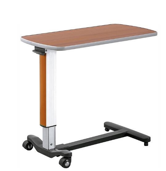 3、餐桌板采用高密度板,表面光滑、四周铝合金包边,经久耐用,桌面采用气弹簧上下升降调节,轻松省力,单手即可操作;铝合金型材立柱,自然时效后氧化处理,耐腐蚀,抗菌易清洁;底架采用碳钢喷涂,“工”字形结构,重心稳定居中,放置稳定不会倾倒,使用时底架伸进床底,立柱贴近病床,餐桌面刚好位于病床中部,使用十分方便。