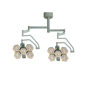 SY02-LED系列LED无影灯有5个和3个多透镜光源矩阵组合而成,其中每个多透镜光源矩阵包含了一定数量的LED(发光二极管)光源,而每个LED光源均可单独发光并经各自的反射面反射,再经过汇聚型光学透镜在手术区域形成不同聚焦置的光域,这些光域的组合实现了表面和深部超强且均匀的照明效果,可以满足各种手术的需要