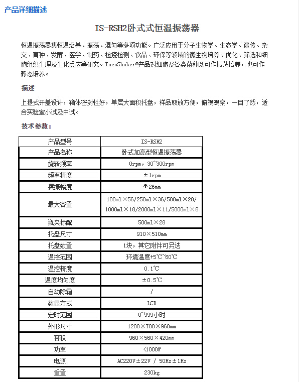 -----------以下"卧式式恒温振荡器 IS-RSH2"相关信息来自网络,仅供参考不作购买下单依据------------