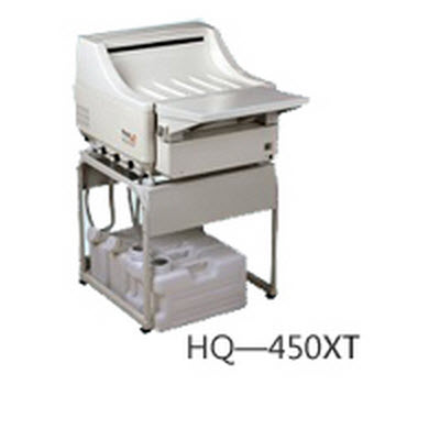 450XT冲洗机整机药槽、外壳等所有塑料部件,全部采用模具注塑成型工艺,从而使整机的制造工艺水平,达到了当今世界同行先进水平,也是目前国产品牌中,唯一采用全注塑成型工艺的产品。本机的另一个先进特点是,他突破了当今世界上同类品牌产品所无法跳跃的设计制造难点,即:药槽超深设计,450XT的药槽及输片轴架深度达140mm,但宽度仅为88mm。如此超深、超窄的药槽及轴架设计,达到冲量大,药液抗氧化性能高,冲洗密度均匀,无任何划伤、冲花现象的高要求。