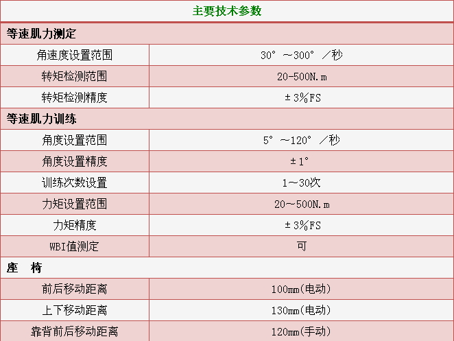 等速肌力测定与训练装置是康复医学、运动医学常用的肌力测定训练设备。使用等速肌力测定时,受试者主观用力只能使肌肉张力增大,不能产生加速度。使用等速测定设备可对下肢进行准确的肌肉功能评定,可以客观地评价肌肉功能,了解肌肉功能损伤程度。以等速方式进行肌力训练时,可以使肌肉在整个关节活动范围内都能以*大阻力进行运动,因而,采用等速方式进行肌力训练可有效地提高训练效果,同时具有很好地安全性。