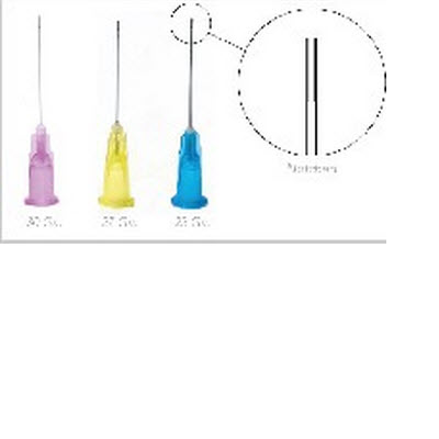 磨口针头,不同的颜色可以辨别是23Ga或者27Ga。100根/盒。