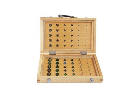 技术参数:42×27×10cm,玻璃球Φ25,5个,Φ20,5个,Φ16,5个。Φ11,5个;铁棒Φ6X60,5个,Φ4X60,5个