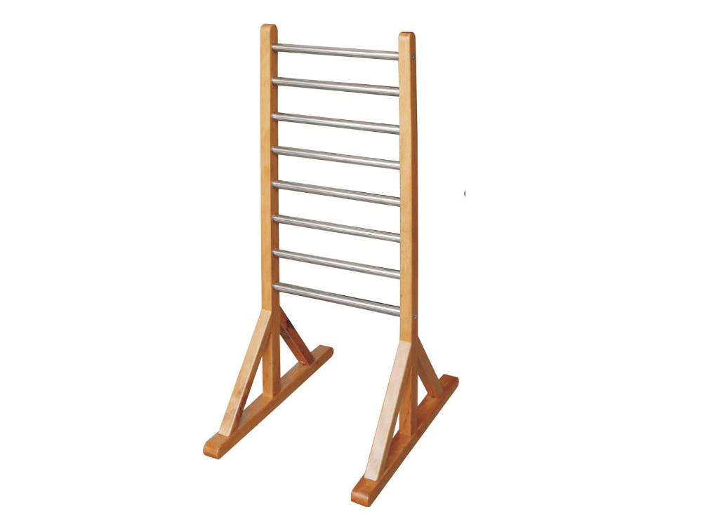 技术参数:73×53×99cm,最高处肋木至地面距离88cm,最低处肋木至地面距离18cm,肋木间距10cm ,肋木直径2cm