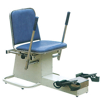 训练床杠架、扶手桌面、固定带、站立板、床面板及角度调节装置六部分组成。站立训练时,使用人平躺在床面上,床面板及固定带和扶手桌面可以使患者固定在桌面上,床面板通过角度调节装置可改变人的身体姿态,可以由0°(卧姿)逐渐变化为90°站姿,调节角度可以随意选择。