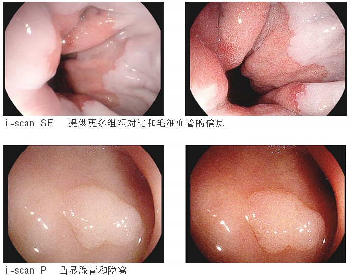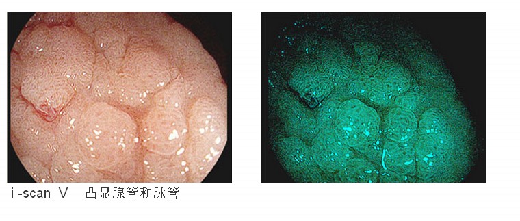 i -scan 软件工具是集成于EPK-i 处理机内的一项新功能,目前它包含的 i -scan SE、 i -scan P、 i -scan V三种功能各有所长。在观察血管形态和细微组织结构、判定病灶边缘以及对腺管开口进行分类等方面的性能大为提高。让医生及早的发现异常微小的病变。值得一提的是新的 i -scan 功能正在持续不断的开发中,得益于EPK-i 的开放式软件体系,这些新的功能可方便的加载到主机中,为您提供更加丰富的诊断方法。