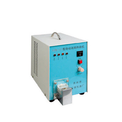 目前, 血站、医院、生物制品行业等单位,普遍采用一次性专用塑料袋来采集和保存血液、血制品及生理盐水。为满足这些专用塑料袋封口的特殊要求, 我厂研制、生产了GZR系列自动高频热合机。该产品是根据聚氯乙烯管道在高频电场作用下产生极化而发热粘合的原理来设计的,具有无污染、不破坏液体的质量、封口可靠不渗漏等优点。进口继电器的采用,提高了可靠了性;热合头的改良设计,使封口冷却后,不用剪刀可以随时拉开。