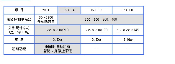 CZK系列微电脑采液控制器是我厂自行设计的新型采液控制器,该系列产品由机内微电脑进行控制,具有承重、扣除血袋重量、采液量控制、托盘摇摆、采液管道阻断以及报警等功能, 为塑料袋采液提供了方便。