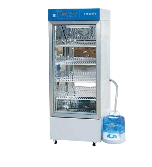 5. 然后根据智能温控仪的使用说明进行操作,设定你所需的温度和湿度值, 温控仪会自动控制使箱内温度和湿度保持恒定(当箱内温度高于设定值时培养箱会自动制冷,反之培养箱会自动加热;加湿器会自动加湿)。