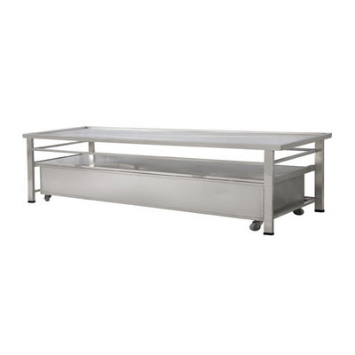 该解剖台加装导轨及可存放两具尸体的大储存箱,该箱体带有四个静音脚轮,不占用空间,可节省实验室的有效使用面积。