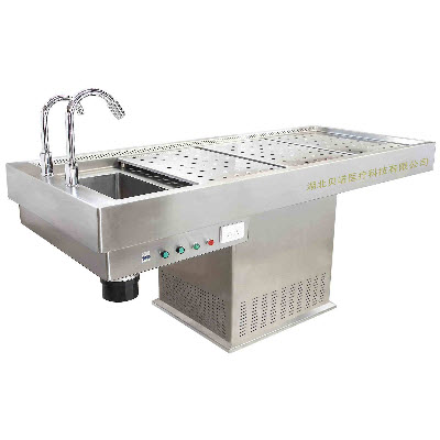 4、采用内置强力风机抽风,可将解剖室内的有害气味从解剖台下面抽出,改善了操作人员的工作条件。