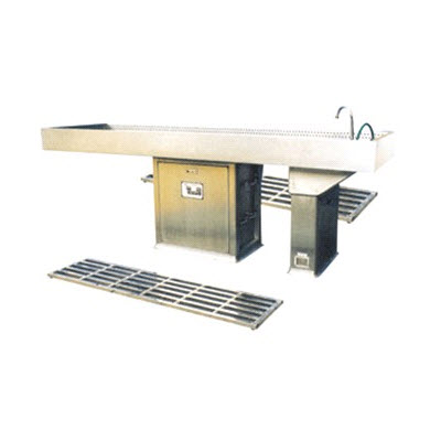 多功能法医解剖台功能特点:具有排气,排水,台面喷淋和冷热水调温功能;多水流调节移动喷淋一,带洗手池脚控水龙头;不锈钢材料,不结垢。方便清洗和消毒。
