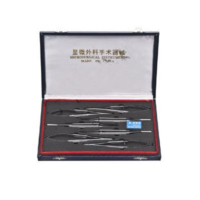 显微镊15cm 0.15mm 直1把,显微镊15cm 0.3mm直 2把,显微持针钳14cm 直1把,显微持针钳14cm 弯1把,显微剪14cm直1把,显微剪14cm弯1把。