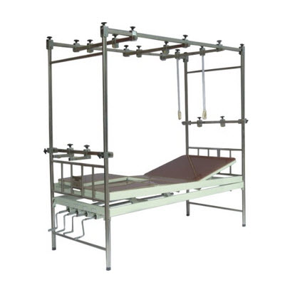 功能:摇杆装有过盈保护装置、左、右腿可分开升降、床面可倾斜、牵引滑轮架、手拉吊环
