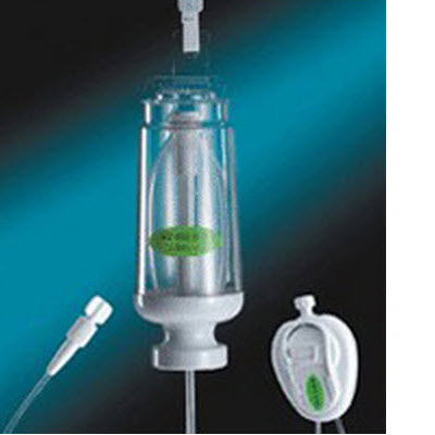 l福尼亚一次性使用输注泵以医用硅胶囊均衡收缩为动力,以流量控制管控制药液流速。
