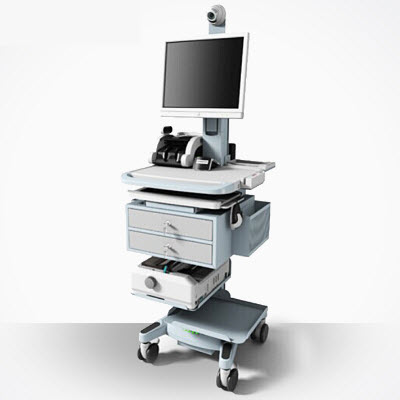 推车上可配有一体机电脑,打印机,移动POS机等设备,依托医院无线网络,支持社保 卡,预付就诊费和银行卡和现金等多种支付方式;除交费以外,还可以进行预付费卡充值机预付费结算业务。