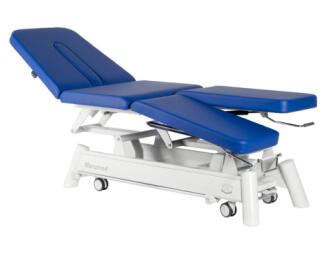三段可独立调节部分,你可以将患者调整到常用的治疗体位;卧姿和坐姿。可以实现身体屈位和/或(身体上斜位)。长条形的呼吸洞有两个主要优点:第一,治疗颈/肩部的时候患者可以将身体最大幅度的靠近顶端。这样,这些区域的治疗就非常容易操作了,而不必弯腰实施治疗。第二,每个患者不论身高都能舒服的躺在床上。患者不论高矮即使在屈曲位,其胸腰部位和头部都能得到理想的支撑。