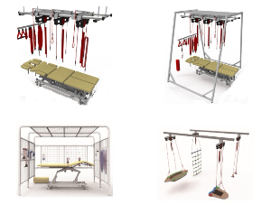 滑轮治疗金属支架系统是模块化的、提高灵活的体系,可根据不同空间和练习种类的需求满足专业需求。这意味着可选择不仅仅有可固定在墙体或天花板的支架,而且还有在两件或多件支撑平面下能够自由移动的支架。
