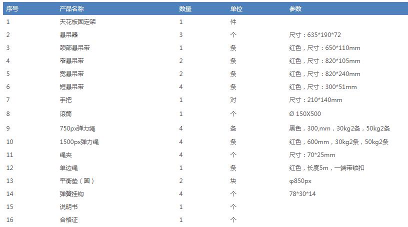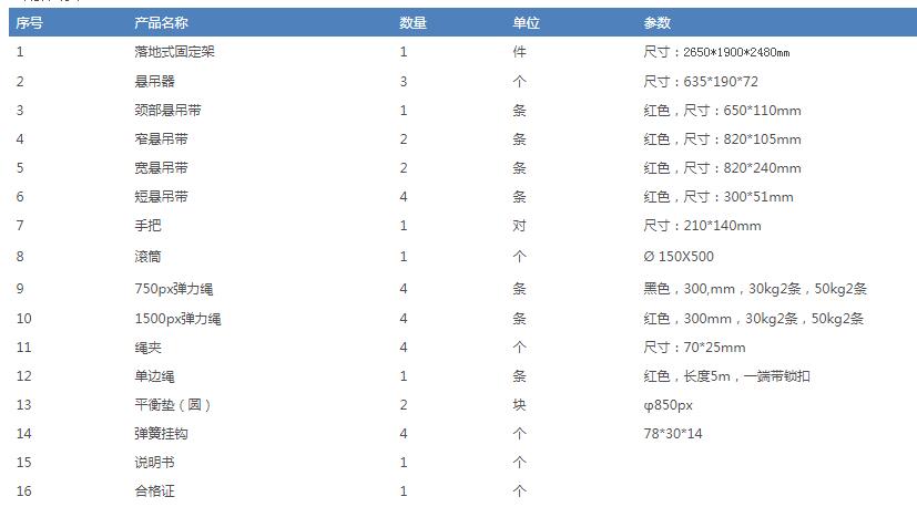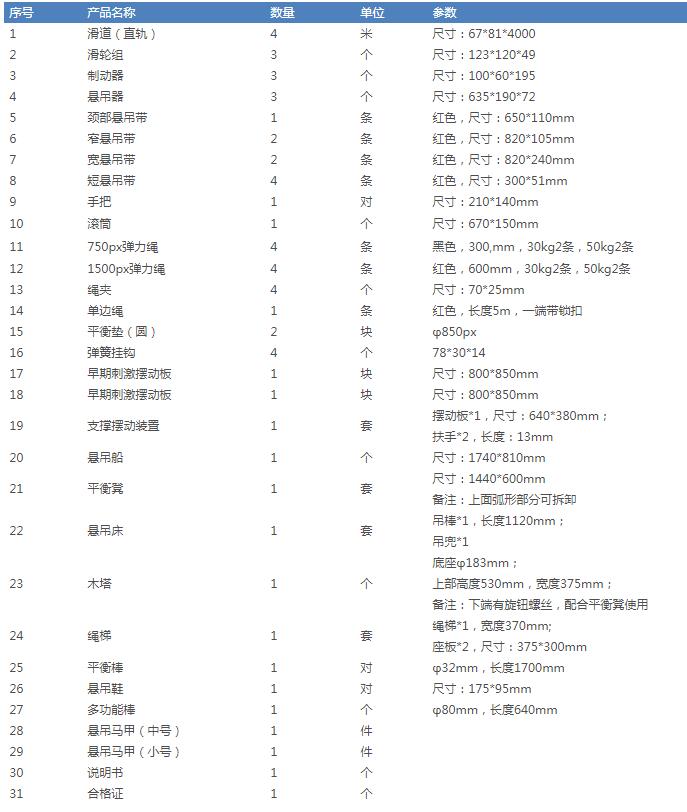 配置清单:(儿童悬吊训练系统 RLMC105)