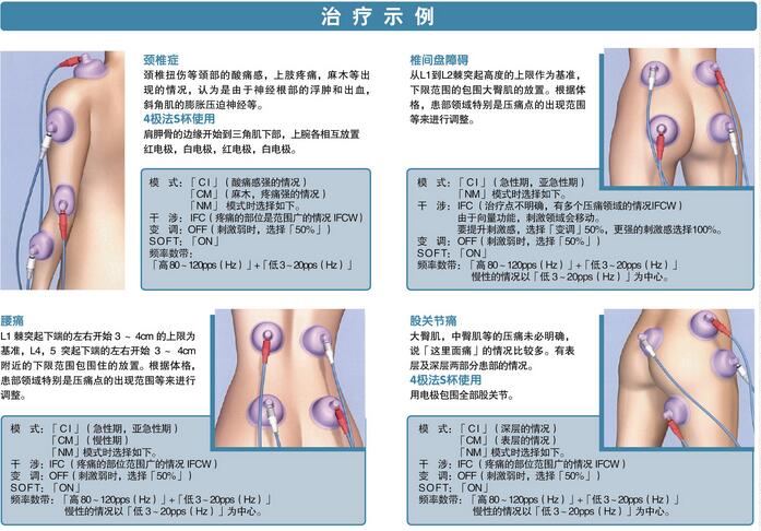 3、6种基础治疗模式:CI、CM、NM、【P1】、【P2】、【P2】以及基于此6种基础治疗模式的层出不穷的变化,针对常见治疗类型,特别提供了3个简洁处方,用以针对人体浅表刺激治疗、贯穿治疗及专门针对肌肉进行治疗。使用者也可根据需要进行修改、设定,提高了临床工作效率。