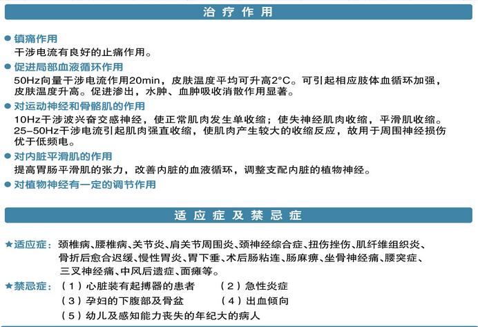 7、干涉周波数:高、中、低及其组合, 治疗频率1-200Hz;