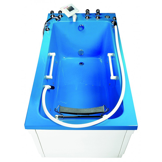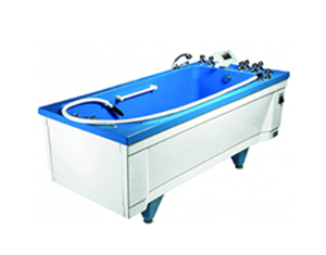 T-UWM型水下按摩浴槽主要用于水下按摩治疗,低水位容量为200升,高水位容量为350升。外形尺寸2300*960*900毫米。配有6个侧壁喷头(左右各3个)、脊柱喷头(3个)、电子控制板(控制自动加水、治疗时间、温度和泵保护)以及消毒系统。