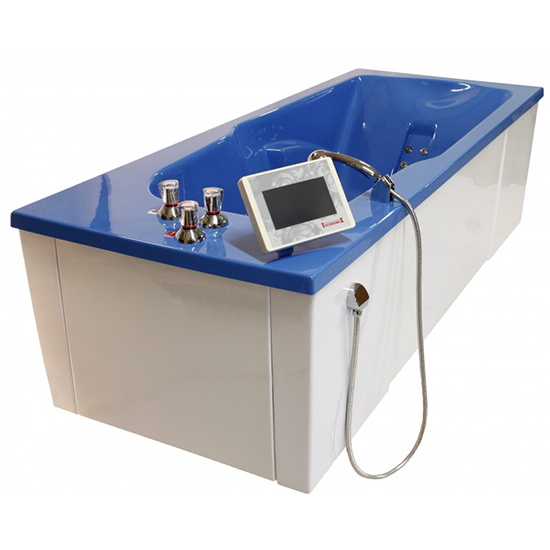 T-MP UWM AUTOMAT型水下按摩珍珠浴槽,该浴槽配备有高性能的水泵系统,治疗过程中水压非常强劲自带的28个喷头可实现自动水下按摩,带有自动加水系统,总容量250升(工作容量190升)。规格尺寸:2080*840*740mm