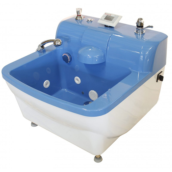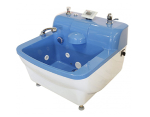 该浴槽(皮萨罗型)主要设计用于对手足部、脚踝和小腿部进行涡流浴疗法,配置有恒温混匀装置,非常容易调节注入水的温度。控制面板可设置工作时间、注入水水位和水温度。低位水容量为40升,高位水容量为57升。规格尺寸:890*880*750毫米
