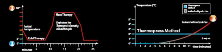 THERMOPRESS型冷热恒温治疗仪为冷热疗提供了革命性的解决方案,可以对人体的任意部位进行冷疗和热疗,通过专门的绑带使温度传输到治疗部位。在治疗过程中,治疗师还可以使用按摩功能以增加疗效。温度范围为0-40℃,但是可以设置恒定的治疗温度及循环。用户可根据需要保存和调用这些循环处方。可以进行恒温治疗也可以进行冷热交替治疗。