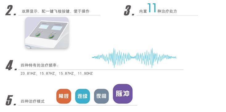 7、输出处方:11种治疗,分别对应11种不同电流模式,无需对频率、脉宽、电压进行调节。