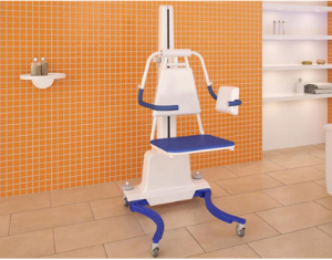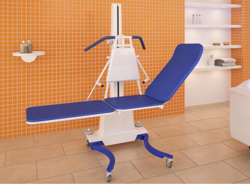 6、所有金属部位都喷有环氧涂层。提升系统带有可旋转轮,其中两个带刹车。前面设计有一些倾斜让能行走的患者更容易坐到椅子上