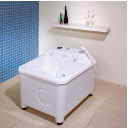 下肢气泡浴通过40个喷嘴间歇喷射水/空气混合物,从而对下肢进行强劲的水下按摩。强有力的循环水泵(250 升/分钟)具有防干烧保护功能,并集成可混入空气的喷水泵。数字定时开关、一个注水用1/2"恒温器以及一个空气调节阀,确保操作简便,使用下肢气泡浴能改善下肢,胃和骨盆反射区功能,如肠蠕动缓慢等症,也能缓解偏头疼和失眠症状