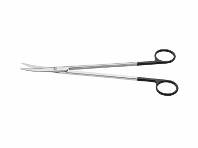 用于软组织的剪切或分离。特点:剪刀超锋利处理,一片开细剪刃,一片剪刃开细齿,使得剪刀在使用过程中咬切更快速,咬合力更强劲,指圈镀黑色标示。