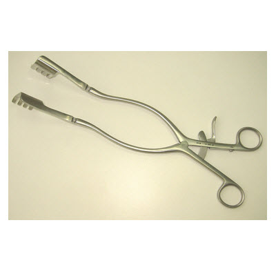 可弯关节式椎板牵开器,32cm长。钝爪,4:5爪,爪尺寸为35mm长,28mm深。用于多种神经脊柱手术。