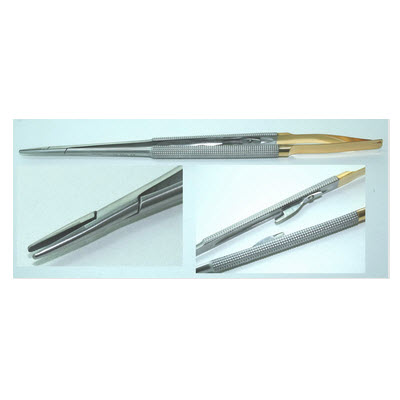 笔式圆柄针持,钳头镶钨碳钢垫片,18cm长。