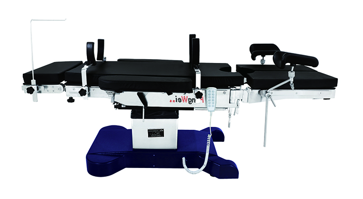 该手术台供医院手术室实行头、颈、胸、腹腔、外阴及四肢等外科及妇产科、五官科、骨科等手术。双层台面,可在手术时进行X射线检查。台面升降,前后倾、左右倾,背板折转全部采用线性电机实现,操作灵活,安全可靠。