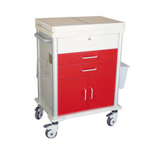 备注:优质不锈钢及铝合金材质、上平拉门、下双开门,双抽、台面米黄、抽屉果绿或红、一方桶、一消毒瓶架、一药盘、一抢救板(选用优质静音轮、静音伸缩导轨、并可根据客户的需求更改颜色、尺寸或配置)