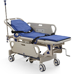 1、产品构成l 本产品由床体、丝杆、靠背转接机构、脚踏刹车和导向机构所构成,通过丝杆的摇动,可以实现床体的上升或下降,通过液压助力可选择半卧位功能,通过脚踏刹车可以实现刹车和解刹车;l 产品配备床垫、盐水架。2、产品功能l 1.床面靠背部分可折起角度0~60°±5°;l 2.车体高低调整范围:520-820(mm)l 3.床面尺寸:1930*650(mm)l 4.床体配带氧气瓶架及锁紧开关;l 5.抢救车采用国际先进的中控刹车系统,稳定可靠。配导向轮装置;
