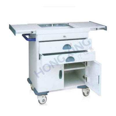 功能:适用于病区急救护理;台面为两侧平拉开,内侧有活动式48格药盘,可取出,每格都有标签插槽;下