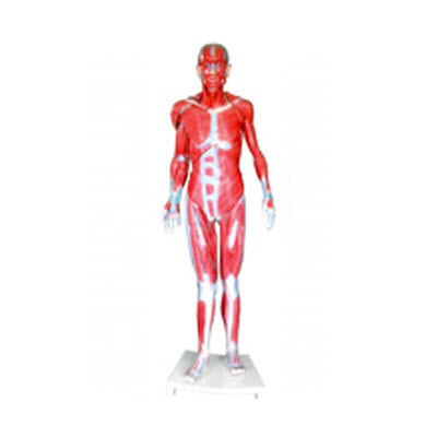 本模型一侧示浅层,一侧示深层,躯干及四肢能拆装,适用于中学生理卫生教学,在讲授人体肌肉结构及生理功能时作演示教具。