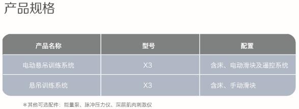电动悬吊训练系统 X3:含床、电动滑块及遥控系统