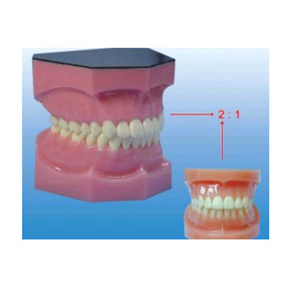此产品为正常牙齿的两倍大小,显示正常牙的排列。