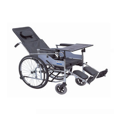 轮椅自带坐便功能,仿皮坐垫,配有餐桌,全电镀车架,可半躺!是一款功能齐全性价比非常高的轮椅!
